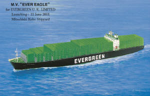 幸いなことに、ビッグイベントに遭遇できた。というのは、大学OB会の工場見学会で超大型コンテナ船「エバーイーグル号」の進水式に参加できたことである。